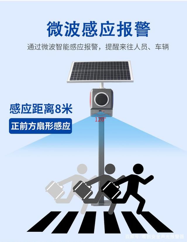 ● 采用微波感应技术,智能检测移动的人和车辆等物体,及时发出提示语音;