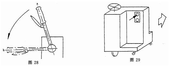 b)除侧面装载和无起升车辆外,无载车辆运行时,最好将其承载装置面向下坡方向。