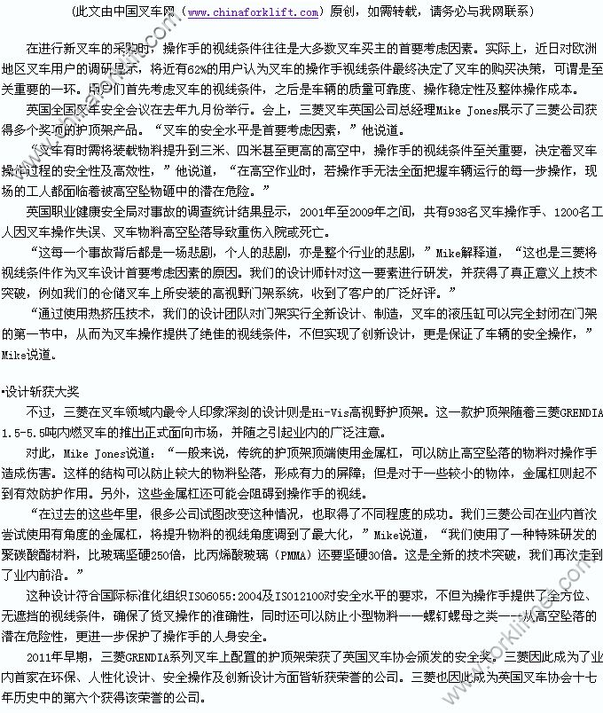 关于三菱 三菱重工和三菱卡特彼勒叉车(美洲、欧洲、亚洲),是全球最主要的叉车厂商之一,拥有数十年的叉车制造经验以及遍及世界的销售服务体系,以5万台/年以上的产量和傲视同业的卓越技术引领物流标准数十年。20年来孜孜不倦致力于支持中国叉车制造业的发展,更使之成为中国用户可信赖的合作者。在此基础上为贴近中国市场,为中国用户提供快捷高效的服务,于2004年3月24日成立菱重叉车(上海)有限公司。