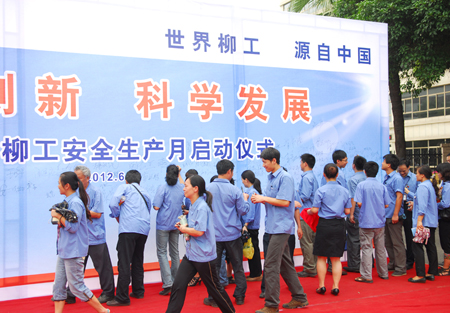 “今年柳工在市场面前确实遇到了前所未有的挑战,但是公司‘以人为本’的价值观不会发生变化,安全是大家的事情,需要每一位员工都亲身参与安全管理的变革与创新。”柳工股份公司总裁曾光安在启动仪式上说,虽然近两年公司健康安全环境工作取得了一些进步,但公司安全管理基础工作仍不扎实,安全工作任重而道远;安全月是安全文化建设重要的契机,希望公司各部门通过安全月活动的平台,将安全提醒和期望传达给每一名员工,鼓励员工积极参与安全自我管理,最终形成柳工的安全文化体系。他强调,为了夯实安全工作基础,公司需要基于ISO14001和OHSAS18001标准,建立起柳工自己的健康安全环保管理体系;此外,对于粉尘及噪声等职业伤害,各级管理层要引起高度重视,指导和监督员工做好职业防护,工艺部门要重视健康安全源头控制。希望在全体员工的共同努力下,公司的安全基础管理工作在2012年能得到进一步提升,消除重伤以上安全事故,实现损工事故率降低20%的目标。