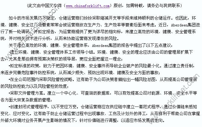 中国叉车安全网(www.forkliftsafety.com.cn)尊重合法版权,反对侵权盗版。(凡是我网所转载之文章,文中所有文字内容和图片视频之知识产权均系原作者和机构所有。文章内容观点,与本网无关。如有需要删除,敬请来电商榷!)