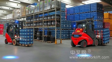 无论何时,作业中的叉车总是有可能与其他车辆及地面操作人员在仓库卸载区、发货以及生产等不同区域发生作业路线交叉,以防止发生意外,故为叉车准备一套能够有效保护现场作业安全就显得特别重要。通常,叉车上都会配备一套警告音发声装置以实现行人保护功能,但实际操作中,叉车司机往往因为不满该设备发出的尖锐声音而选择将其关闭,导致其失去应有的警示功效。根据对用户需求的分析,林德物料搬运日前设计了BlueSpot ™,该技术从视觉上可以提前预知车辆的运行位置,特别是在嘈杂的作业环境中,‘蓝点’的使用效果非常明显,能够起到安全哨兵的作用,排除潜在的安全隐患,也增加了安全生产的砝码。