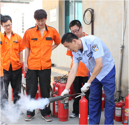 7月11日上午8:30分,大连叉车公司安保中心组织各车间安全员、各班车车长进行每年一度的消防演习,针对“消防设备的正确使用方法、遇到火情时正确的逃生、自救和互救方法以及在乘坐车辆遇到事故时应该怎样进行逃生的方法”进行了详细讲解和实地演习。