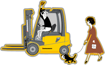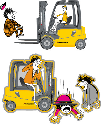 留意叉车周围行人,注意不要撞伤他人。 注意自己的安全,不要伤害到自己。 确保您的头、脚和手臂位于座舱内部...