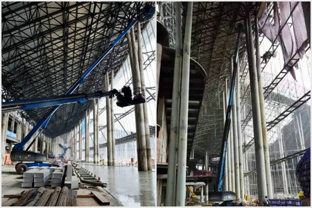 真正用上了吉尼高空作业平台,工人们就体会到了高空作业平台的优势。在施工过程中,高空作业平台有效地提升了工作效率,也远比传统高空作业平台安全的多。常见的钢结构脚手架必须和墙面距离30cm以上,所以在进行涂料的时候常常需要倾斜身体才能够顺利喷涂墙面,会影响到身体平衡,让工人们很没有安全感。而高空作业平台在细节上做起全面照顾到了安全问题,让人操作起来非常安心并能大大提升工作效率高空作业平台的稳定使得工作时间大大缩短,原本需要一整天时间的工作只需要短短几小时就能顺利完成,这是传统的高空作业工具,例如脚手架、吊篮等无法匹及的。原本陌生的高空作业平台就这样成为了施工工人的信赖的高空作业首选。吉尼高空作业平台将会继续在中国西部国际博览城的工地上发光发热,贯穿施工全过程,为我国中西部最大的会展中心的建成助力。