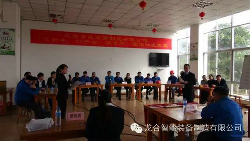 在2016年新年来临之际,12月25日龙合智能装备制造有限公司在综合楼一楼餐厅举办了《迎新年,创安全,提素质》团体知识竞赛。本届团体知识竞赛是一次展示公司企业文化丰厚底蕴的活动,是表现广大员工良好精神风貌的活动,更是继往开来,谱写龙合智能装备制造有限公司发展新篇章的盛会。