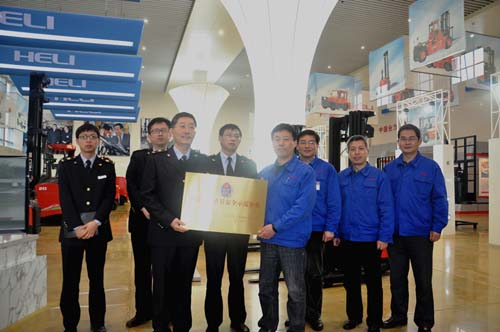 4月6日下午,国家质检总局委托安徽省出入境检验检疫局对安徽合力股份有限公司获得“中国出口质量安全示范企业”称号进行授牌,授牌仪式在合力展厅举行,股份公司总经理薛白出席了仪式并同来访人员在视频会议室座谈交流 。