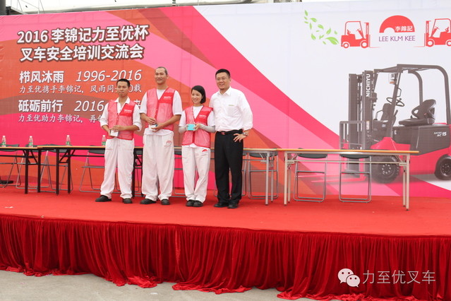 由力至优南方大区主办、中山分公司承办、李锦记新会工厂协办的“2016李锦记力至优杯安全培训交流会”于2016年6月16日拉开帷幕,由李锦记各厂区选拔出来的优秀叉车驾驶员在当日下午的叉车技巧大赛比拼中群雄逐鹿,最后由李锦记物流部选派的选手拔得头筹,荣得桂冠!本次活动的胜利召开也对力至优与李锦记在未来的合作上将会有更深远的意义,同时也预示着双方将会有更好的共赢!