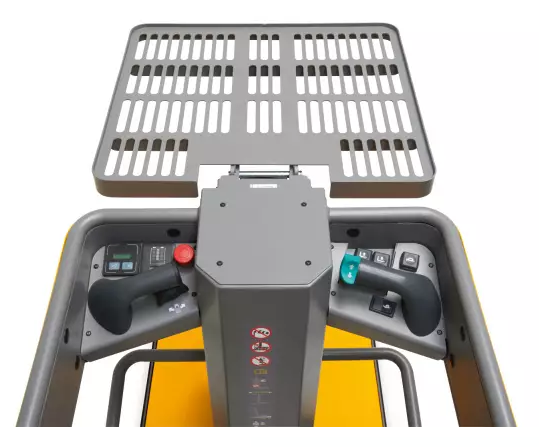 即使在高处,驾驶员依旧非常安全。自动关闭的门可确保安全,因为只有在门关闭时才能进行起升。选配的门锁定装置可进一步确保安全。只要站立平台升起,门就会自动关闭并锁定。只有当站立平台完全降下时,门才会重新打开。