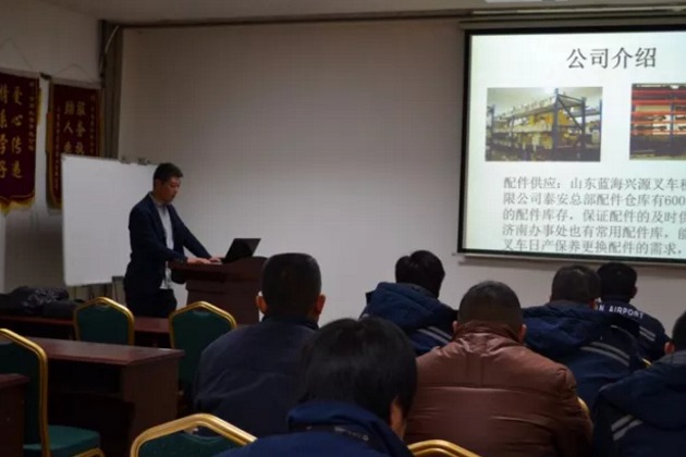 2017年11月23日,山东蓝海兴源叉车租赁有限公司对济南国际机场叉车驾驶人员进行了《叉车安全使用培训》与现场的问题解答,增强济南机场叉车驾驶人员的驾驶安全意识和基本的保养知识。