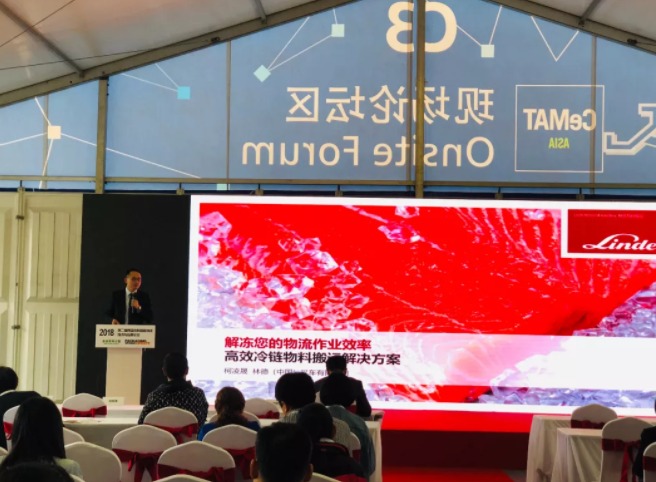 同天,2018第二届食品饮料智能物流技术与应用论坛在C3室外展区举行,会议以“食品安全,物流先行”为主题,吸引了广大食品饮料及物流行业等专业人士的交流与讨论。现场,林德(中国)产品管理经理柯凌晟先生分享了《解冻您的物流作业效率》的主题演讲,鲜明地介绍了林德叉车及其相关物流解决方案,如何实现物流作业效率提升和智能化升级,引起了与会人员的关注与肯定。