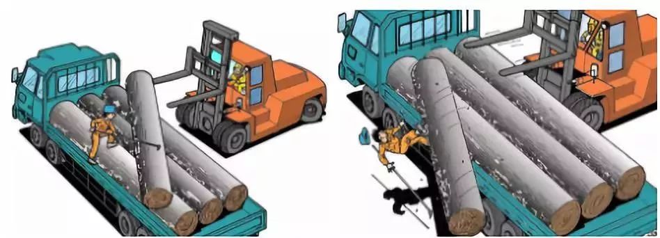 叉车在装原木时,将原木推下,车上的工人被砸死。
