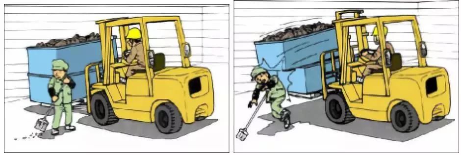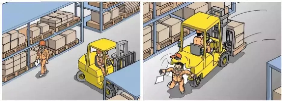 叉车在仓库转弯倒车时,将旁边的人撞伤。
