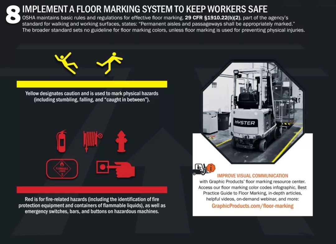 (2)在您的设施中实施地板(叉车停放地)标记系统;