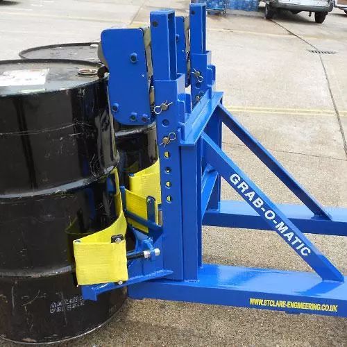 Grab-O-Matic快速连接和释放系统的开发旨在提高安全性并节省时间,以及在将机械叉式附件固定到叉车时。鼓装卸单元可以快速牢固地安装,然后从卡车上脱离,而驾驶员不必离开座椅。
