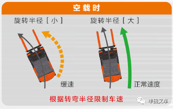 丰田小TIPS:充分提醒叉车操作人员空载过弯时充分降低车速。