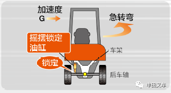 后轮摇摆锁定控制功能:当感知到横向加速度时,通过油缸锁定后轮轴的摆动,将三角形稳定区域变为四边形,缓解了车辆侧翻的临界状态,提高空载状态下的车辆过弯稳定性。