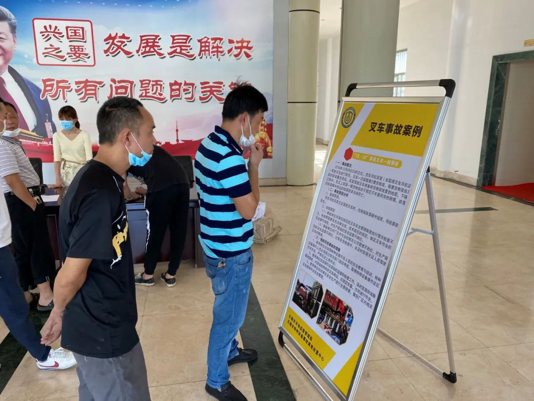 在现场,事故调处中心的同志,结合展板,讲解了叉车使用注意事项和日常保养和叉车事故案例,总结事故教训,让使用单位重视叉车安全。督促企业牢固树立安全生产意识,时刻绷紧安全生产这根弦,落实叉车安全管理责任。