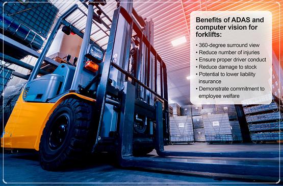 威盛Mobile360 AI叉车安全驾驶套件可提高叉车的驾驶安全性,提高叉车车队的利用率和管理效率,并借助智驾技术为叉车车队带来诸多先进手段: