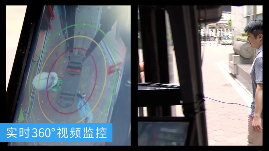 - 3 - 实时360°视频监控威盛Mobile360 SVS(环视系统)技术在叉车上发挥作用。使用四个面向外部的摄像头拍摄360°全景,并结合视频输入以生成车辆及其周围环境的3D渲染。全景视频流将显示在车内7英寸的高分辨率屏幕上。驾驶员在叉车上就可以清楚的看到车辆周围情况,并在人员或其他车辆靠近时立即做出反应。