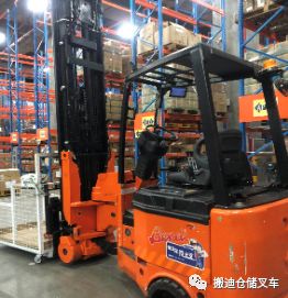 2、实现货物拣选:配套了叉车安全笼,实现拣选功能。