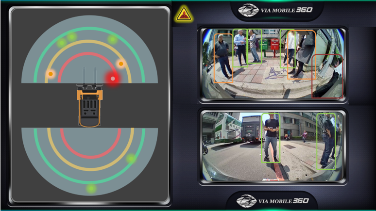 威盛Mobile360 AI叉车安全驾驶套件拥有360°防撞预警,用三个不同的色带来表达不同的危险级别,能够精准进行距离测量,当人员进行危险区域时,叉车驾驶员就会收到预警,这也从一定程度上减轻了叉车操作员的劳动强度。从而有效预防车撞人、车撞物、车撞车等高危事故的发生。