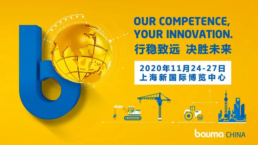 bauma CHINA 2020,上海国际工程机械、建材机械、矿山机械、工程车辆及设备博览会, 将于2020年11月24-27日在上海新国际博览中心如期举办。本届展会以“行稳致远,决胜未来”为全新主题口号,将汇聚3,000参展商,以室内外共30万平米的展示面积,呈现中国制造业不断迈向更高端、高效的最新成果,预计吸引18万名专业观众注册参观。