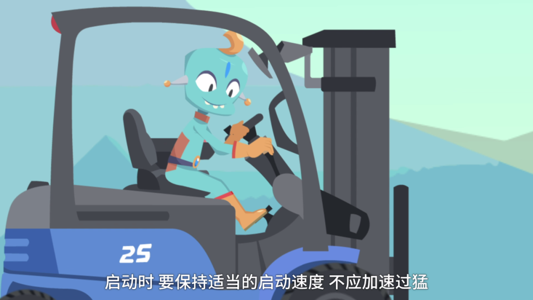 2叉车起步前,观察确认无妨碍行车安全的障碍后,先鸣笛再起步,起步时应缓慢平稳;载物起步时,驾驶员应先确认所载货物稳固牢靠。