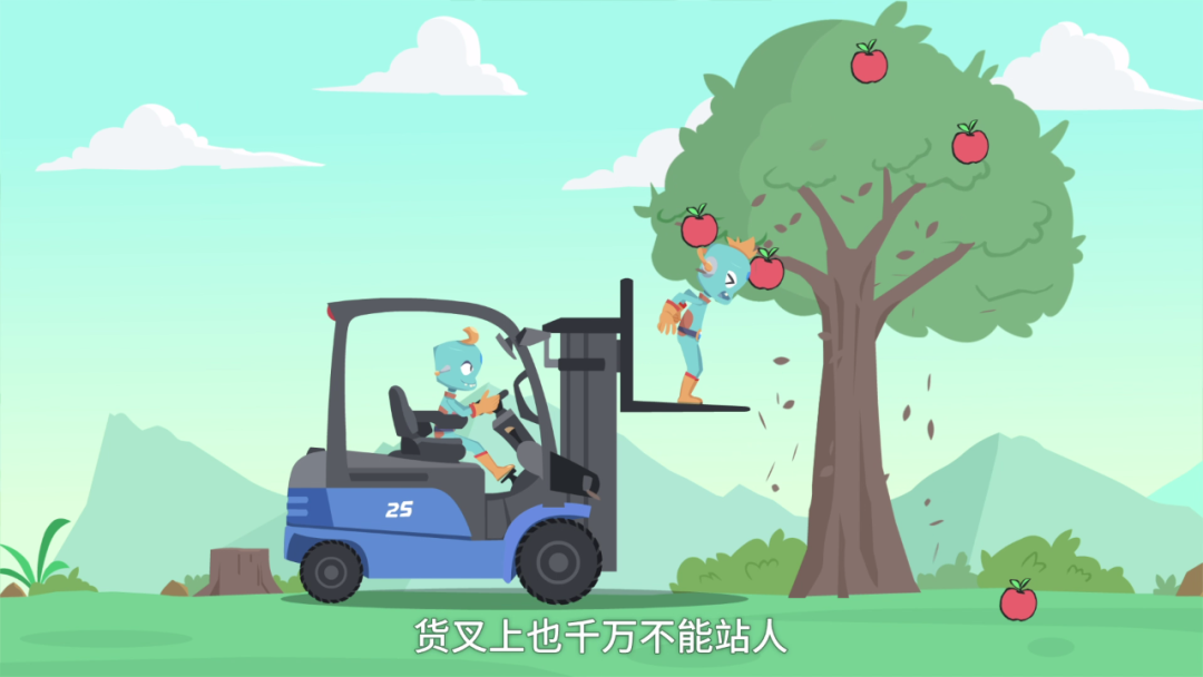 5叉车行进作业时,禁止人员站在货叉上及其周围,以免货物倒塌伤人;为提高行驶稳定性并保证驾驶员良好的视野,载物行驶时可将货物向后倾斜,并不宜将货叉举升过高。