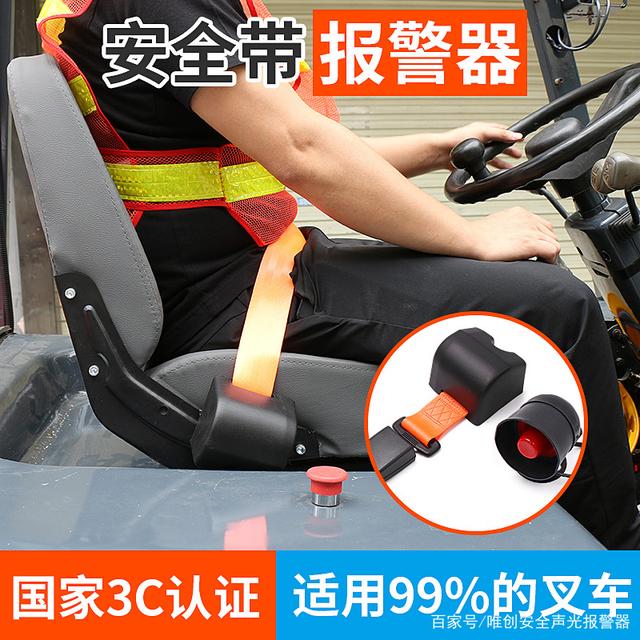 叉车安全带报警器是用于防止驾驶员在叉车发生猛烈碰撞或紧急制动时驾驶员不与方向盘、挡风玻璃等发生二次碰撞或抛出车外,从而造成的严重伤害的一种叉车安全装置、配件。