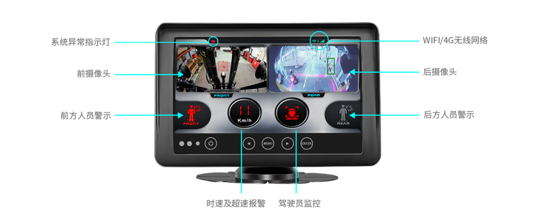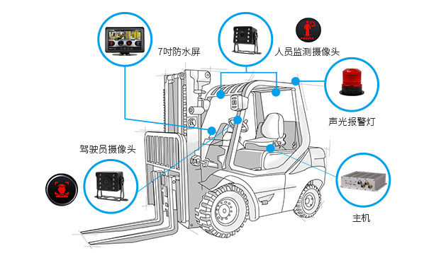 唯创安全AI影像防撞预警系统是将AI影像技术运用在叉车防撞领域的一种创新,通过叉车上安装的AI摄像头,叉车司机可以提前得知车辆周围的安全隐患,高效识别行人,利用油门控制器做到提前减速和停止,而且还能通过DMS驾驶员监控技术实时监测司机的不安全行为,尽早预防,这样就可以大大提升叉车的搬运安全。