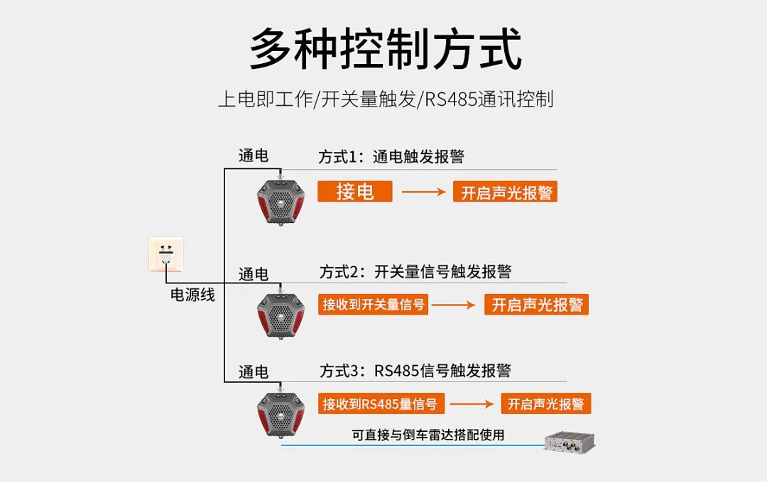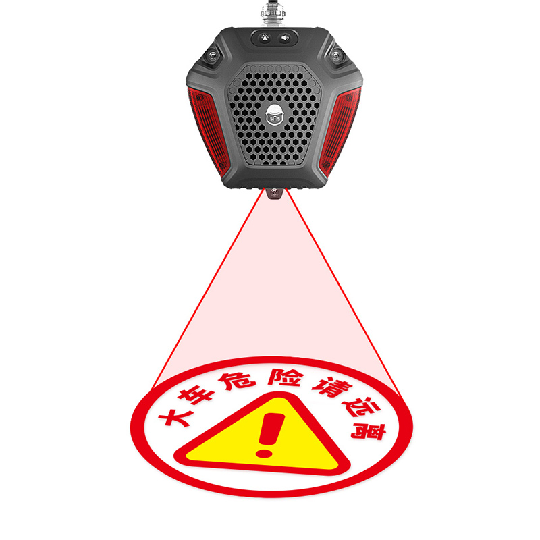 1、智能声光警示+图文投影,“声、光、图文“三重警示;