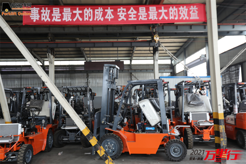 此外,中叉网一行还在现代海麟叉车生产线现场看到了一条巨幅的安全生产标语,韦总对此特别强调,现代海麟一直以来都非常重视安全生产工作。