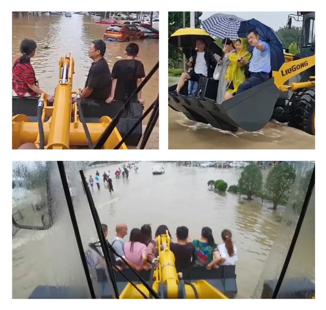 柳工装载机利用“身高”优势将城市居民运送到安全地带