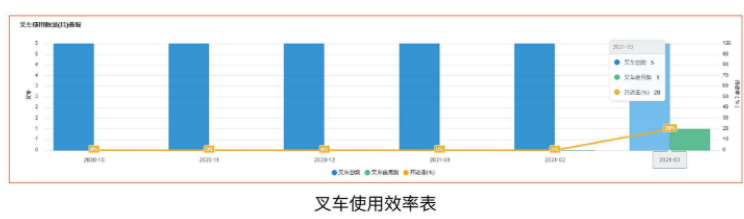 资产效用管理:其中有工作时长统计、停留时长统计、叉车效率报表、班次效率报表、班次利用率排名、车均效率统计等。此功能可通过精准效率分析体现业务分布和波动情况,为计划调配和临时调配做出管理依据。