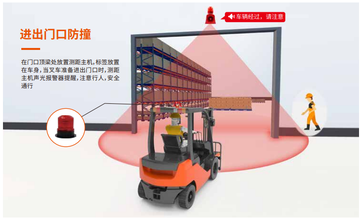 叉车是仓库大型重吨位运输机械,视觉盲区较多,一旦发生碰撞,由于叉车以及货物过重,惯性较大,很容易撞伤人或者撞到货架引起货物倒塌伤人,珍爱生命,叉车防撞势在必行!