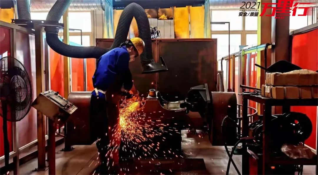 小吨位、大吨位、重装转向桥焊接机器人的投入,可以实现焊接转向桥88%机器人焊接。主销桁架线自动化程度高,加工线自动上下料,1人可以同时操作5台设备,这条生产线具备年产能28万件主销的能力,加工尺寸的快速自测在此线体上得到完美体现,产品质量得以保证!