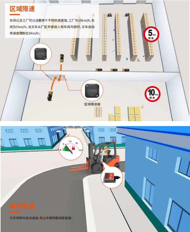 (1)叉车速度管理:叉车超速报警器/叉车限速器