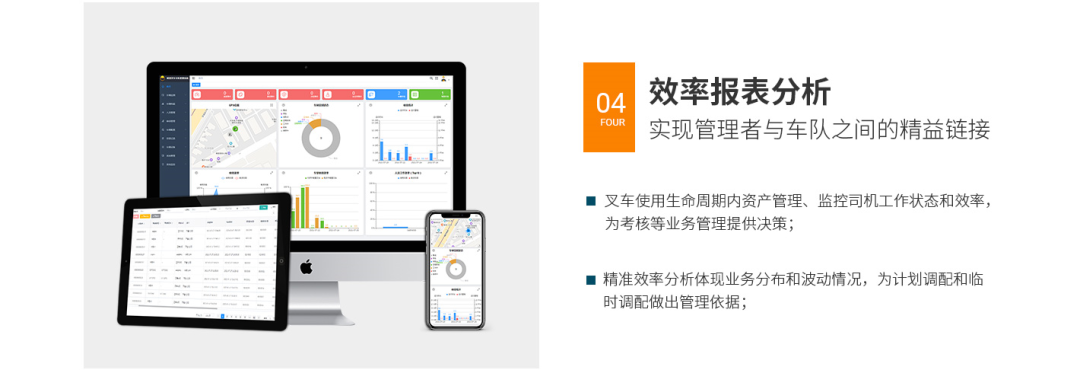 叉车及驾驶员的实际工作状况,管理层完全可以通过后台系统,得到真实的情况,有效管理,节省不必要的浪费,提高生产效率。远程调度,智能调配空闲车辆,有效解决车辆闲置不合理分配的问题。管理者可以依据这些信息发现问题并作出更有效的决策。