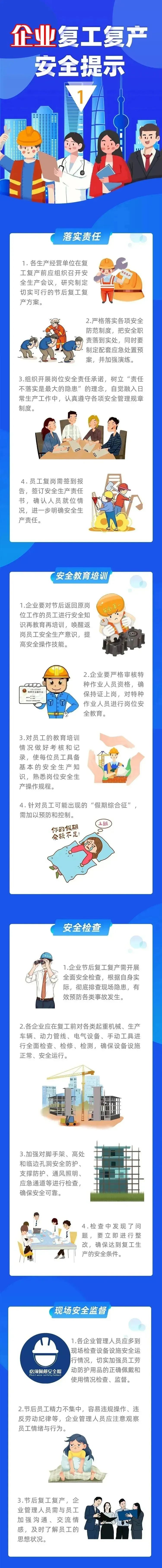 春节长假结束后,企业陆续开始恢复生产,由于长假容易形成人员松懈麻痹的思想,使人放松安全生产的警惕性,复工期间历来是安全生产事故的易发期和多发期,企业应高度重视春节后的安全管理。