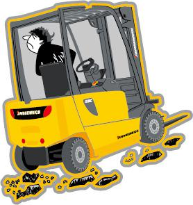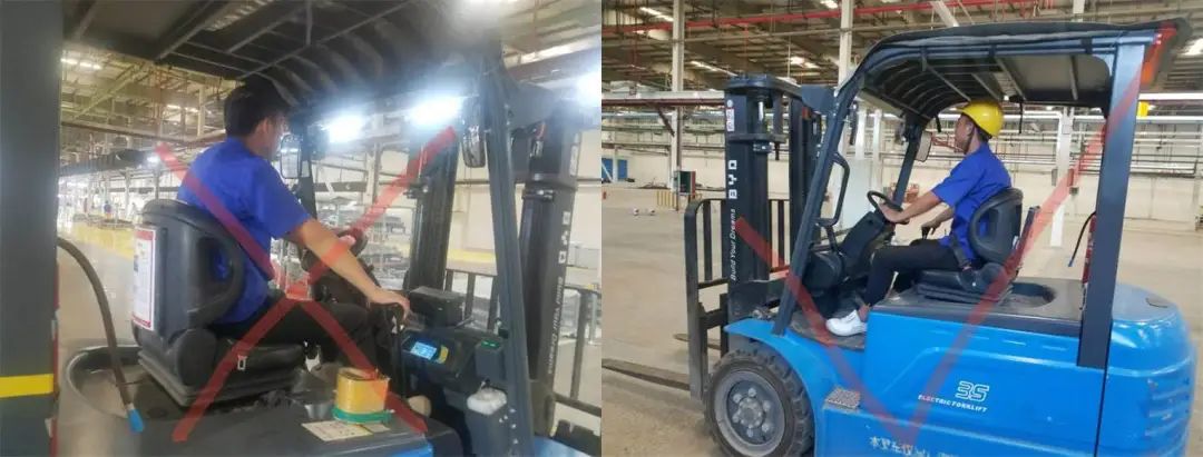 👆为了您的安全:操作机动叉车必须佩戴安全帽、穿劳保鞋、系安全带