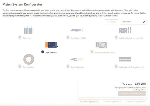 视觉系统配置器工具简化了选择过程,允许您定制整个视觉系统以满足您的要求。