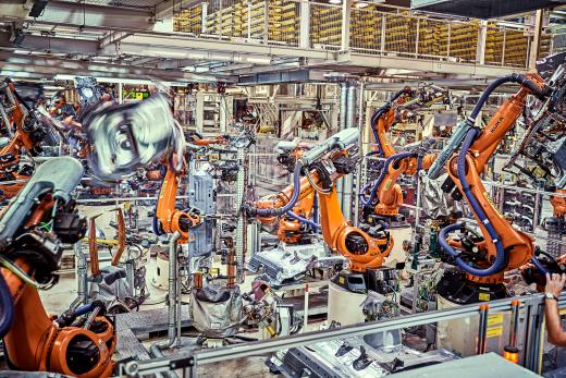 最常见的工业机器人是有角度的或铰接式的。六轴工业机器人由两个称为机械手和手腕的机械部件组成:它们使机器人不仅可以伸出手,还可以使用手腕扭转到所需的角度。“库卡机器人在我们的焊接车间中数量最多,有超过两千台。紧随其后的是日本制造商 Fanuc 的机器人,最近部署了来自瑞典品牌 ABB 的 60 台机器人。我们与大众汽车集团合作,根据既定标准选择供应商。他们必须支持我们的技术,从处理到电阻或激光成型。然后我们将自己的软件库上传到机器中。没有机器人是单一用途的——每个机器人都被编程来处理所有任务,”捷克卡解释道。