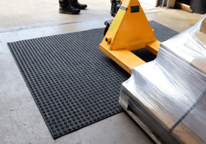 叉车垫是专门设计的地垫,可以安装在仓库入口处,吸收叉车车轮上的水。这种地垫包括普通入口地垫所使用的相同功能和原理,包括吸收水的堆积物和帮助刮走污垢的凸起华夫饼干图案。不同的是,First Mats的叉车地垫,由于采用了100%的SBR橡胶背衬和强化的双层表面图案,大大增加了耐久性。