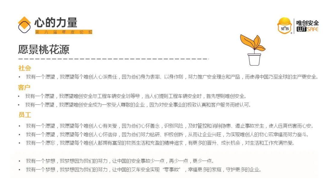 确立了唯创安全的幸福观与员工幸福体系,意义重大!坚守以心为本的经营,为挑战高目标凝心聚力,托起全体唯创人的物心双幸福!