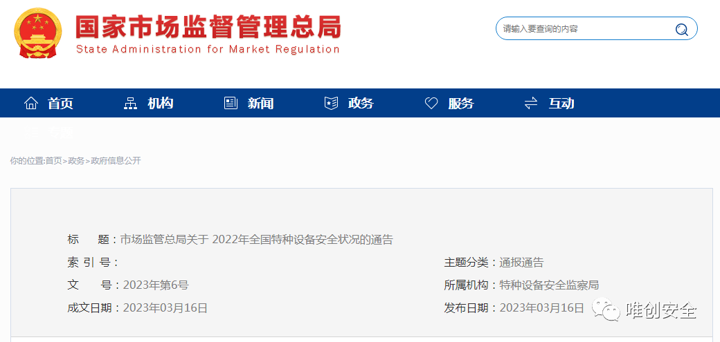 根据《中华人民共和国特种设备安全法》《特种设备安全监察条例》的规定,现将2022年全国特种设备安全状况通告如下。