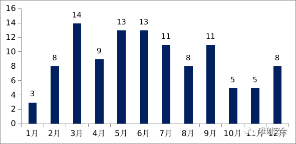 按发生时间进行划分,二季度特种设备事故数量最高,四季度特种设备事故数量最低。其主要原因是部分企业存在安全管理松懈、隐患排查不到位的情况,再加上设备未及时进行维护或作业人员流失,造成发生事故的风险增大;四季度特种设备事故数量最少,其主要原因是各地市场监管部门采取针对性措施化解风险隐患,同时由于疫情防控影响,部分设备处于停用状态。(见图6)