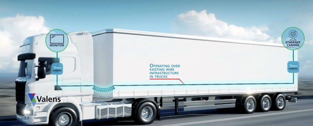 Valens 开发了通过现有的为拖车供电的重型电缆传输高清摄像头信号的技术。这很有挑战性,因为电缆陈旧、简单且容易受到干扰。