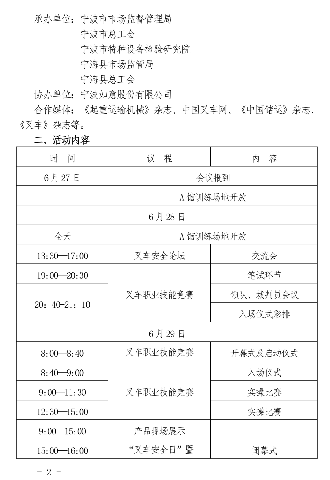 第三届“叉车安全日”活动暨叉车职业技能竞赛活动将定于2023年6 月27日-29日在浙江省宁海县召开。