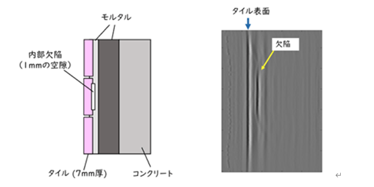 该无线电波在改变其频率的同时照射目标物体。通过计算从目标物体反射回来的无线电波与原始无线电波之间的幅度差,可以确定外墙内部缺陷的位置。